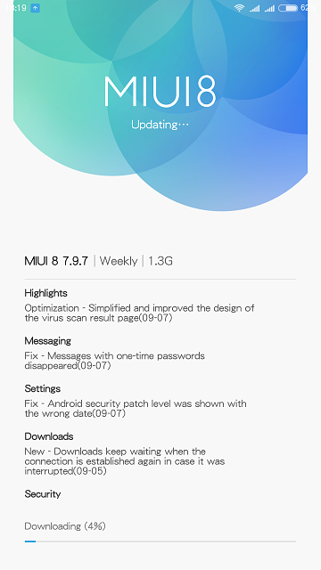 サイトによるとGlobal Developer ROMを使用している場合は、アプリ「Updater」でアップグレードできるようです。アプリを起動するとMIUI8 7.9.7(2017年9月7日の意)がありました。あれ、MIUI9じゃないのか。メニュー等を見てもMIUI9へのアップグレードはわかりません。一度最新のMIUI8にしてからアップグレードするのかと考え、とりあえずアップデートしました。
