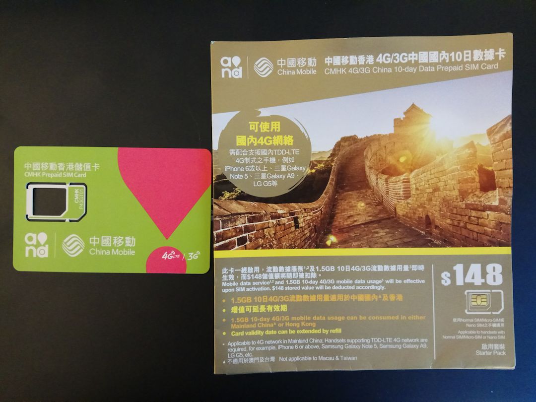 紹介されているSIMカードの写真を見る限り、中国移動通信の$68のプリペイドSIMのようです。特徴としては、