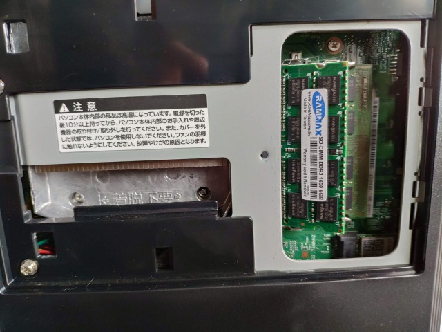 と表示されました。ソフトやデータをほとんど入れていないのでディスクの空き容量は十分なはずです。となるとメモリ不足です。これでは使い物にならないのでメモリ増設です。